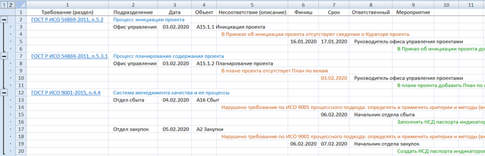 Рис. 12. Лист «Несоответствия» отчета по аудитам