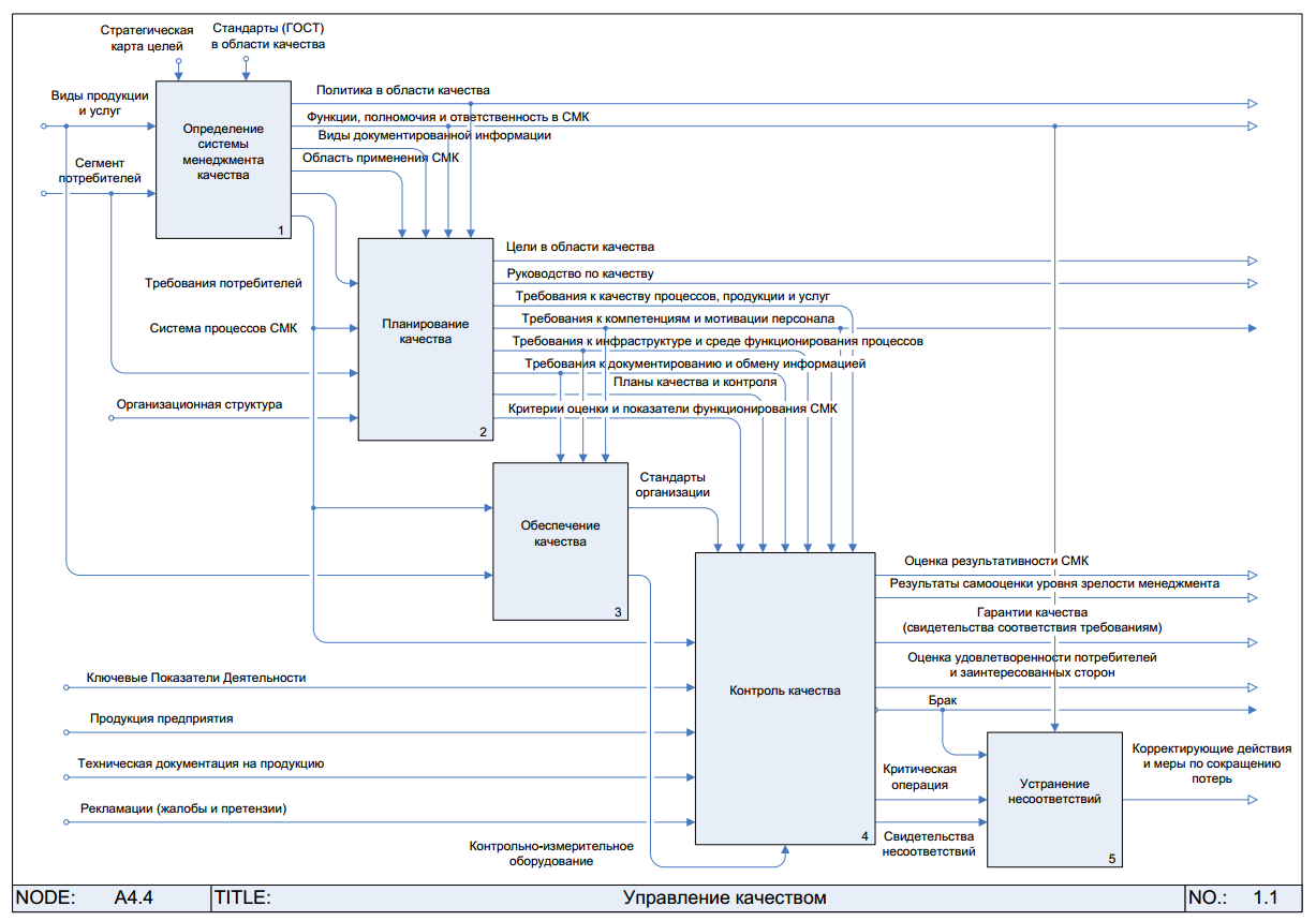 Операционная структура процесса «Управление качеством на предприятии» представленная в универсальном классификаторе процессов для различных отраслей американского центра производительности и качества (APQC), включает следующие операции: