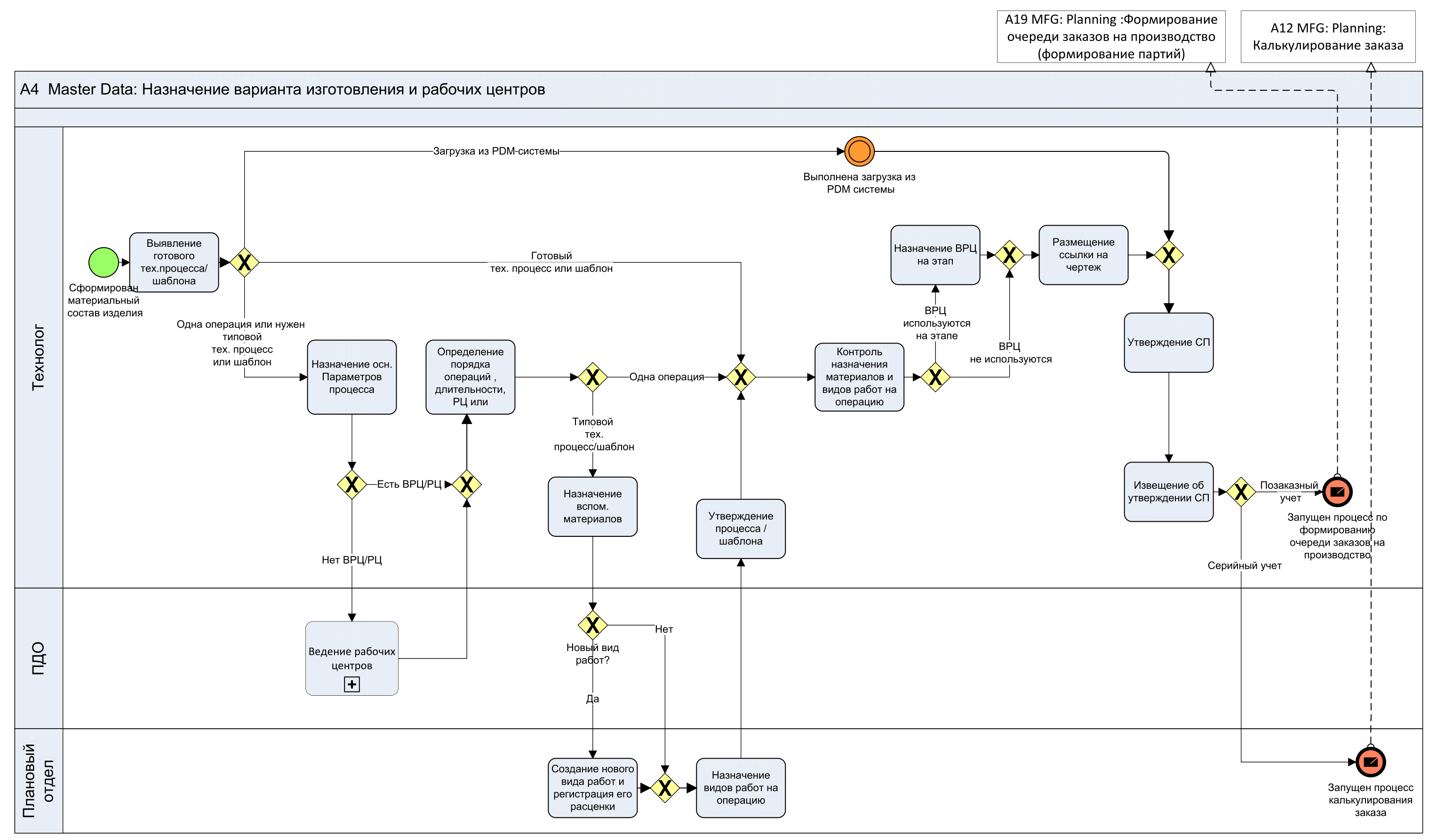 Рис. 3. Диаграмма «Назначение варианта изготовления и рабочих центров»