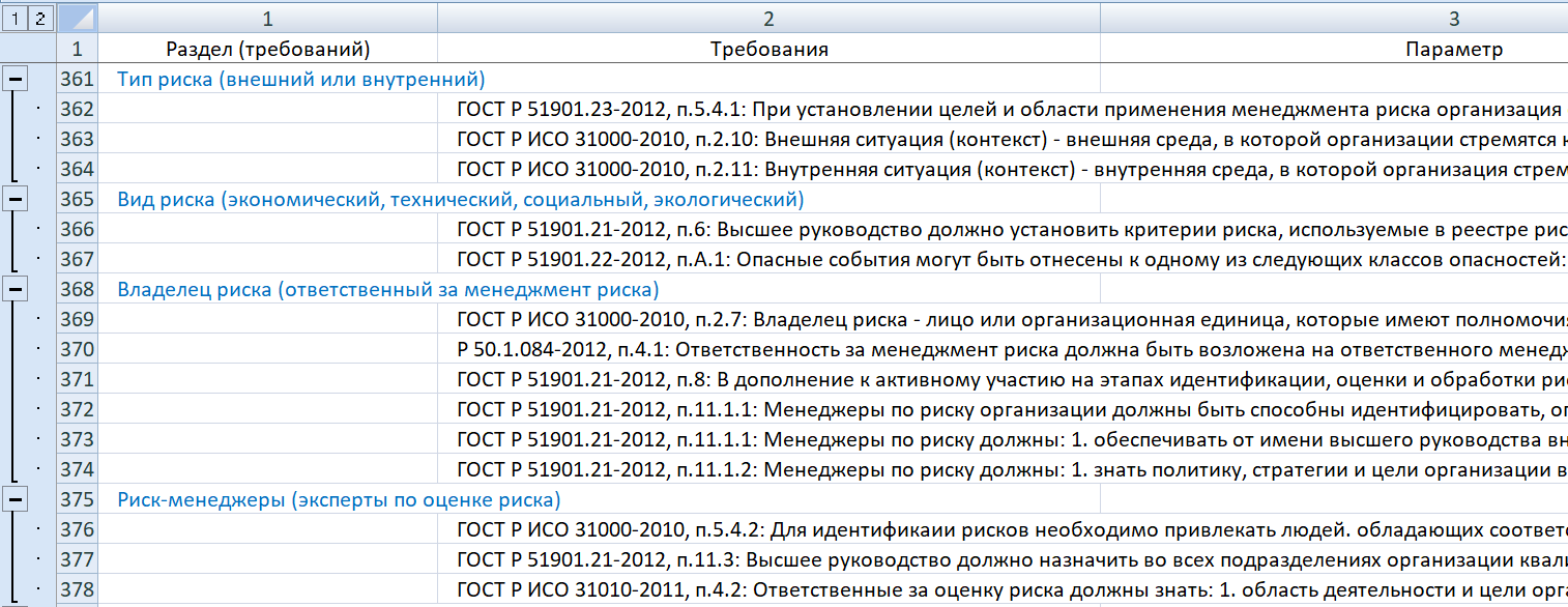 - ГОСТ Р 51901.22–2012 «Менеджмент риска. Реестр риска. Правила построения».