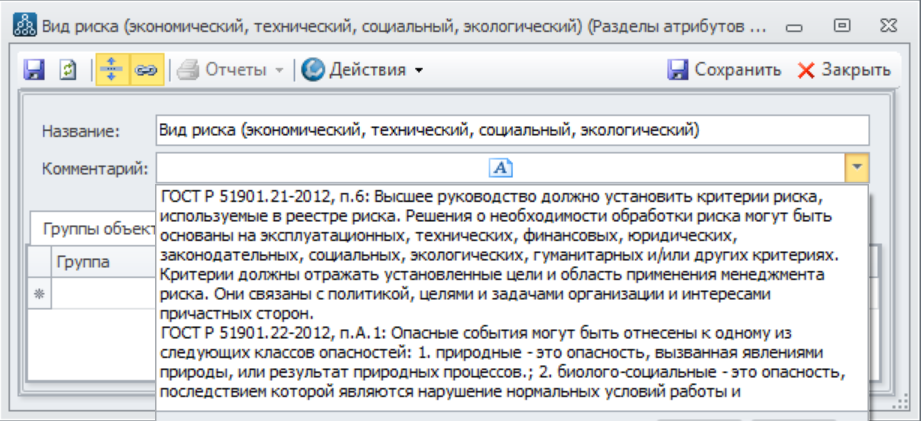 - требования к параметрам риска указываются в поле «Комментарий» раздела атрибутов объекта (рис. 5).