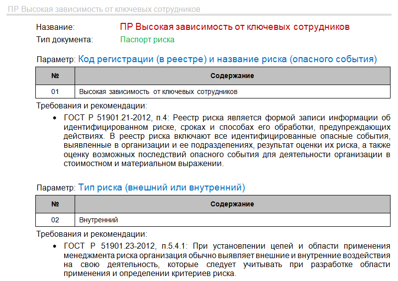- ГОСТ Р 51901.21–2012 «Менеджмент риска. Реестр риска. Общие положения».