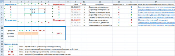 Рис. 8. Лист «Матрица рисков» Excel-отчета по мониторингу