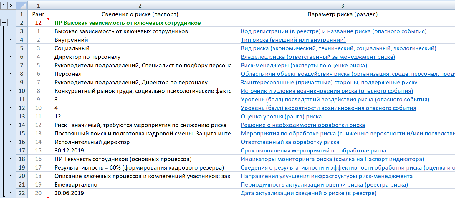 Рис. 9. Лист «Риски» Excel-отчета по мониторингу