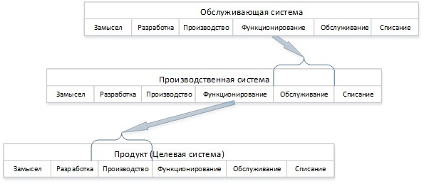Стадии жизненного цикла отражают следующую идею: «Шаги разработки новой системы можно рассматривать как постепенную „материализацию“ системы — постепенный переход от абстрактной потребности к сборке и монтажу пригодных к работе компонентов, совместно выполняющих сложные функции ради удовлетворения данной потребности» [А.Косяков «Системная инженерия», с.143]. Нужно понимать, что это упрощенное изображение реального протекания стадий, которые в реальности могут накладываться во времени друг на друга, чередоваться (например, функционирование системы и ее обслуживание)