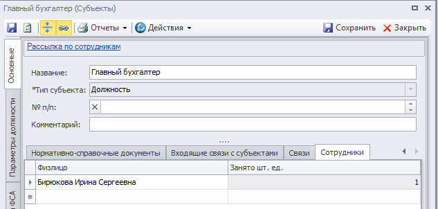 - Пользователи и их должности, подразделения.