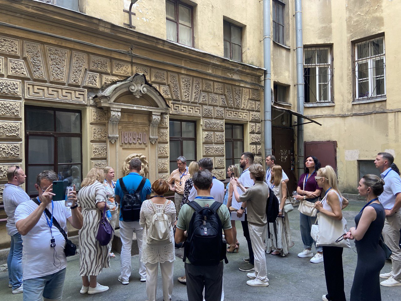 После деловой части мероприятия участники отправились на экскурсию по атмосферным дворам и парадным города и узнали много интересных легенд и преданий, которые окутывают историю Петербурга.