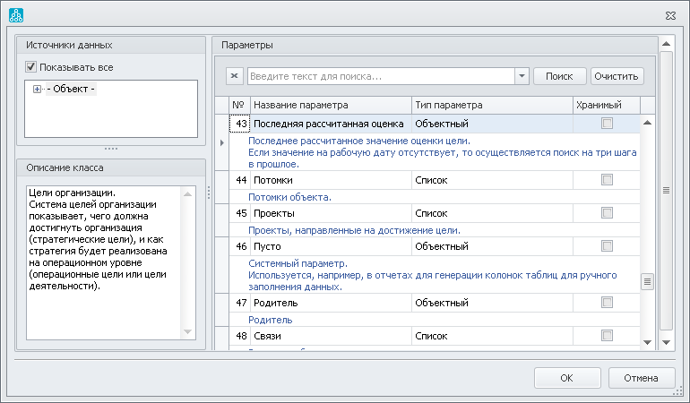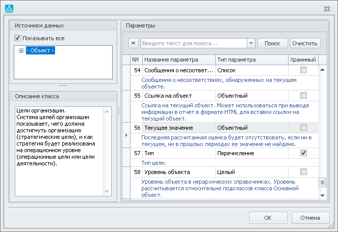 Следующие параметры наиболее востребованы для отображения на диаграмме стратегической карты: