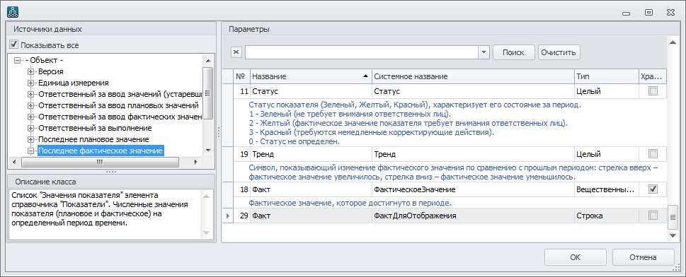 - откроется окно выбора параметра для отображения его значения. Если необходимо, установить флажок Показывать все. В нашем случае это необходимо. Выбрать параметр для отображения его значений, например "Текущее значение" (Рис. 2).