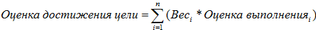 В общем случае, если у цели несколько показателей с разной силой влияния, расчет параметра "Оценка достижения" цели производится так: