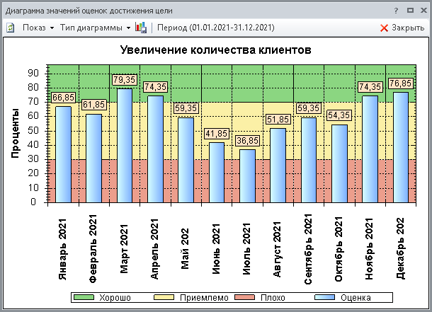 В окне Диаграмма значений оценок достижения цели (Рис. 6) есть следующие способы управления отображением информации: