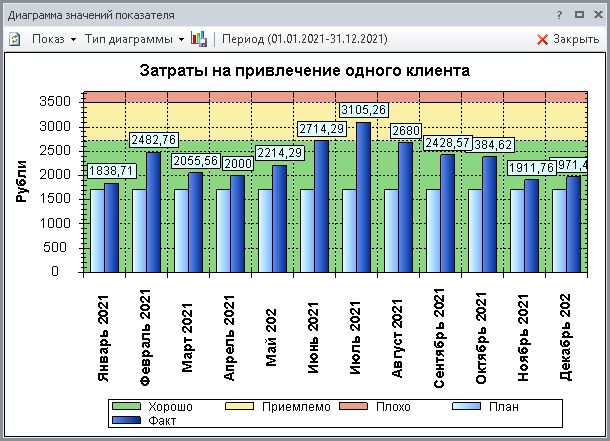В окне Диаграмма значений показателя (Рис. 4) есть следующие способы управления отображением информации: