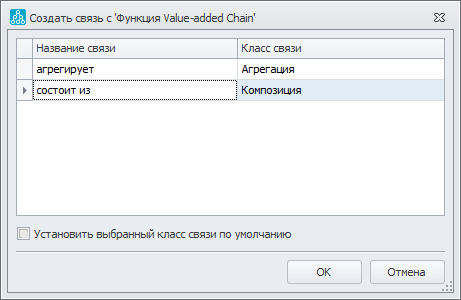 При помещении фигуры Функция VAD/Функция VAD группа в фигуру Функция VAD/Функция VAD группа возникает окно выбора класса связи (рисунок 6).