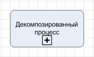 На диаграммах нотации BPMN декомпозированные единицы деятельности отличаются от недекомпозированных наличием символа "+" в нижней части блока единицы деятельности (Рис 2).