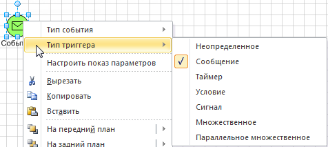 По умолчанию события добавляются на диаграмму с типом триггера "Неопределенное". На диаграмме тип триггера определяется при помощи подменю Тип триггера в контекстном меню, вызываемом от события (Рис. 7).