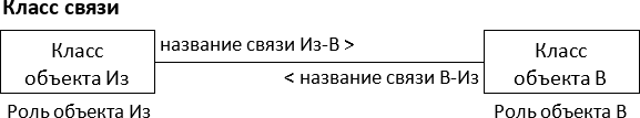 Как видно из примера, только лишь перечисление пары объектов не дает никакой информации о сути связи. Чтобы понять, что означает связь, нужно, по аналогии с обычным объектом, понять к какому классу связей она принадлежит.