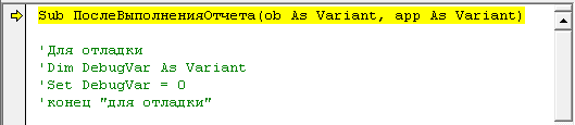Далее отчет следует запускать на выполнение при отладке макроса (см. Отладка кода).