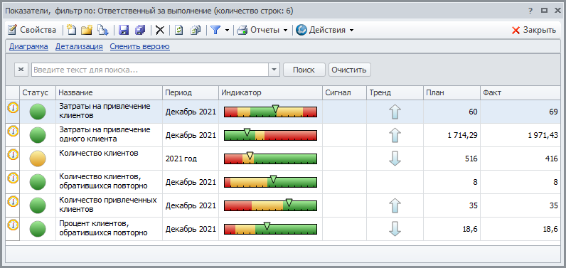 По мере получения значений показателей и накопления фактического материала по ним, пользователь получает возможность их анализировать - как текущие значения, так и динамику их изменений (Рис. 1).