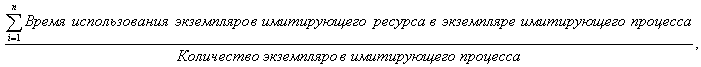 | Средняя стоимость использования | Средняя стоимость потребления имитирующего материального ресурса при выполнении экземпляра имитирующего процесса. Рассчитывается в валюте имитации. Параметр рассчитывается по формуле: |