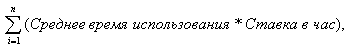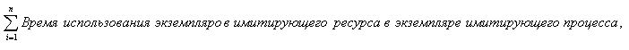 | Суммарная стоимость использования | Суммарная стоимость потребления имитирующего материального ресурса за время имитации при выполнении экземпляров имитирующего процесса. Параметр рассчитывается по формуле: |