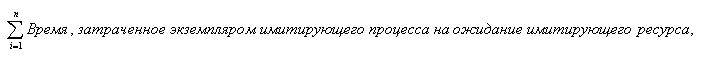 - длительное время, проведенное экземплярами имитирующих операций экземпляров этого имитирующего процесса в ожидании экземпляров имитирующих временных ресурсов, которые были заняты, выполняя экземпляры других имитирующих операций, или были недоступны по рабочему календарю;