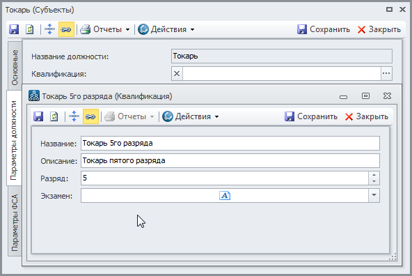 В качестве примера возьмем задачу создать объектное поле Квалификация для оргединиц-должностей, у этого поля, в свою очередь, должны быть параметры Разряд (целое), Описание (строка) и Экзамен (текст).