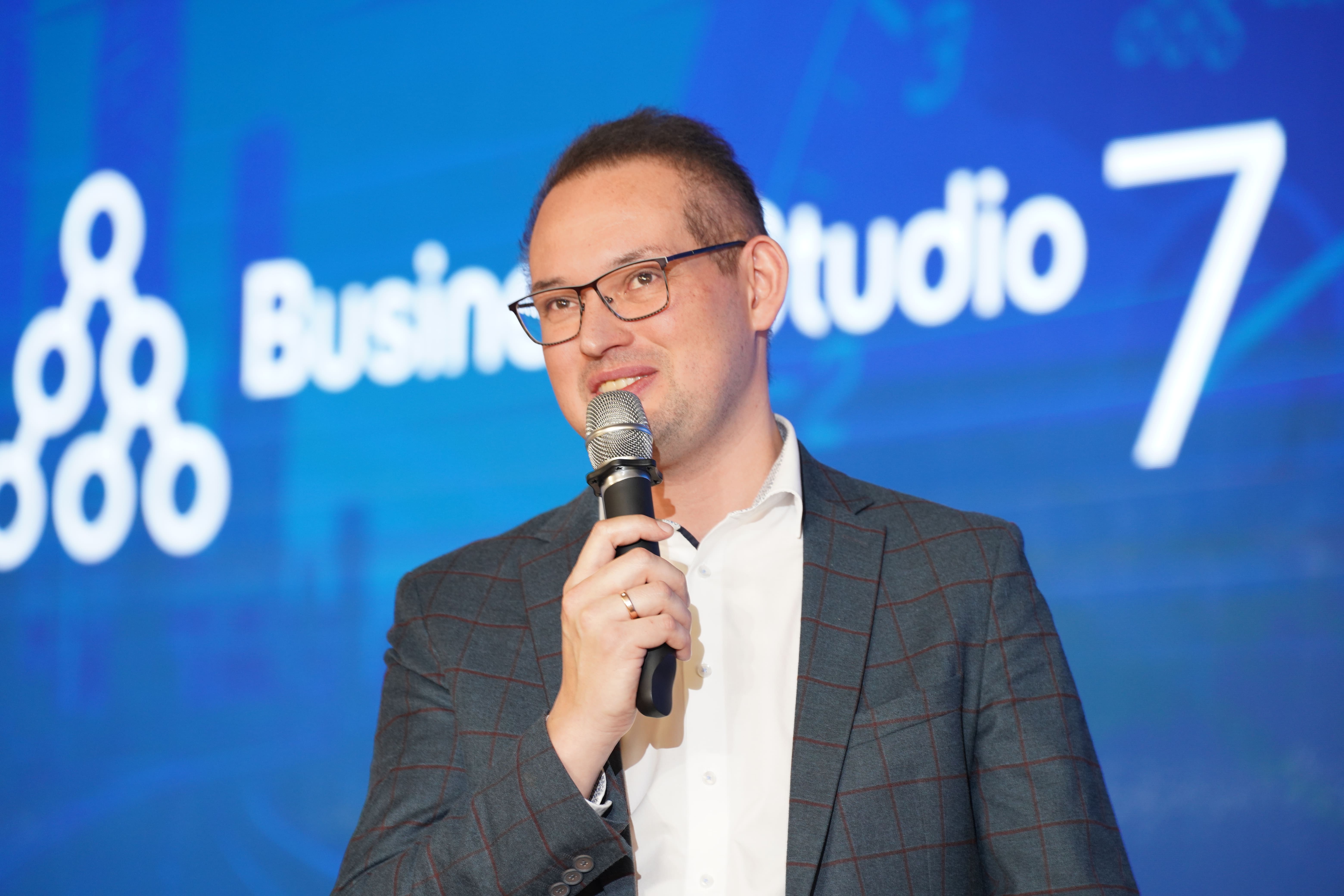 Первым с докладом «Идеальный инструмент для бизнес-моделирования» выступил Пинаев Дмитрий, генеральный директор ГК «СТУ», продакт-оунер Business Studio. Дмитрий рассказал о том, как Business Studio 7 отвечает на ключевые запросы рынка, и провел детальный обзор новшеств и стратегий развития продукта.