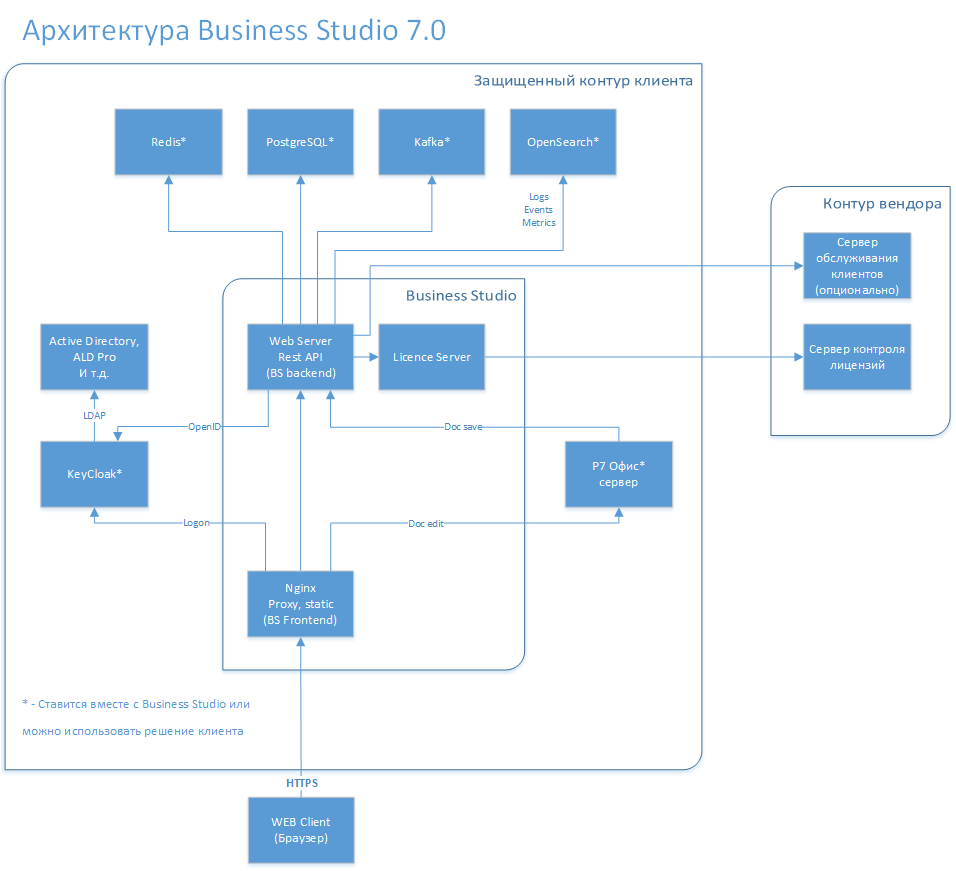 - Бэкенд: Linux, .NET, Nginx, KeyCloak, OnlyOffice/Р7 Офис, OpenSearch, Kafka, Redis.