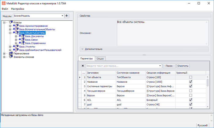 Для внесения изменений в структуру классов баз данных Business Studio используется модуль MetaEdit. С его помощью можно создавать не только собственные параметры у уже имеющихся классов, но и собственные классы-справочники c параметрами для использования в новых или существующих базах данных.