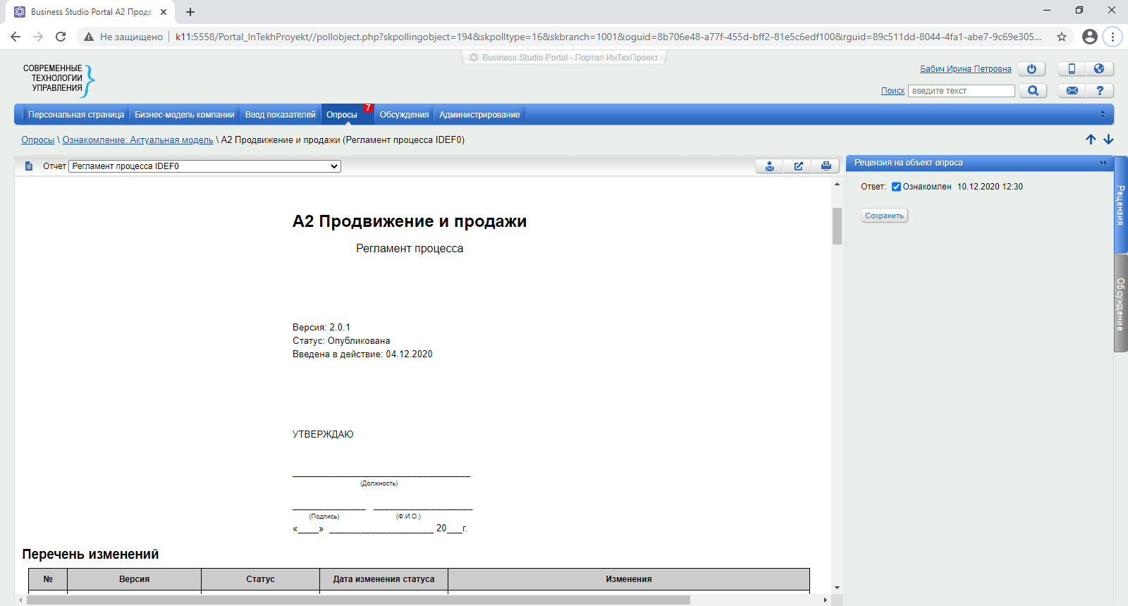 После авторизации сотрудник попадает на свою Персональную страницу, на которой представлена нужная для работы информация и документы: «Описание должности», «Должностная инструкция», «Описание подразделения» и другие.