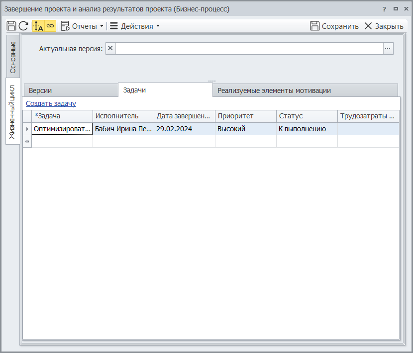 Business Studio поддерживает метод CRUD (Create, Read, Update, Delete) для описания действий с данными в операциях бизнес-процессов. Это позволяет сформировать отчеты о жизненном цикле информационного объекта.