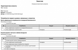 Карта потребностей;