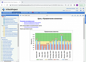 Business Studio позволяет компаниям провести формализацию стратегии, выделить и зафиксировать на стратегической карте дерево целей компании, разработать показатели достижения этих целей. Для каждого показателя задаются целевое значение и дата его достижения, а также план движения к целевому значению в разбивке по выбранному периоду измерения. За каждой целью и показателем закрепляются отвечающие за них сотрудники, а также сотрудники, ответственные за внесение значений показателей. Поддерживается каскадирование стратегической карты уровня всей компании на локальные стратегические карты подразделений.