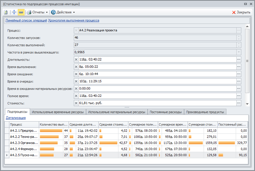 Система отчетов, реализованная в Business Studio, позволяет получить необходимые данные по процессам и показателям. Это дает возможность руководству в короткие сроки начать получать необходимую аналитику.